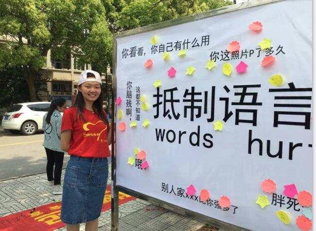 2016.4.29,由3D动漫 Sunny爱心协会主办的“[Words hurt too]抵制语言暴力我们在行动”活动在3D动漫 举办。 活动分为线上和线下两部分进行,线下外场在中苑食堂附近举办,sunny爱心协会用展板展示了用硬纸板做成的模型——拆开可拼成语言暴力的句子,组合则可变成斧子形状;同时展出的还有大型海报展板,上有前期经过网络投票选出的最具杀伤力的句子。 外场现场,许多同学站在大型海报展板前,或是仔细思考该如何将语言暴力句子改...