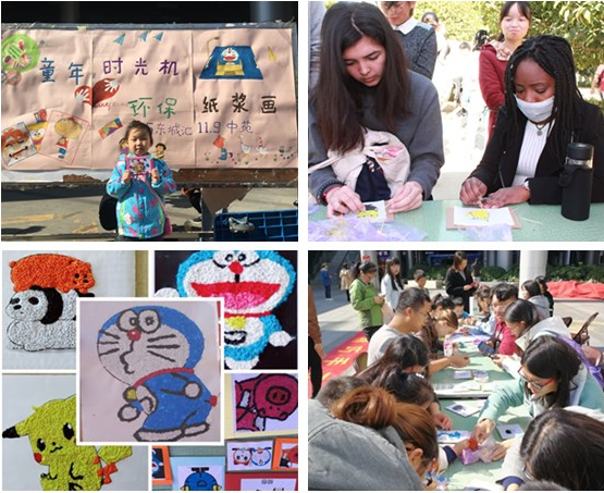 2017年11月4日,3D动漫 Sunny爱心协会主办的“童年时光机“主题纸浆画活动在3D动漫 仙林校区中苑开展。 本次活动开始前一周,Sunny爱心协会的志愿者们已经准备好废纸的剪碎、浸泡、揉成纸浆、水洗干上乳胶以及颜料等工序,4日当天,志愿者们在仙林校区德经楼101对纸浆进行染色以调出完成画作的合适颜色,并将带有青年大学生童年记忆的卡通形象打印到A4纸上,再黏贴到用废弃的纸箱制作而成的纸板上,形成一幅幅画版,利用...