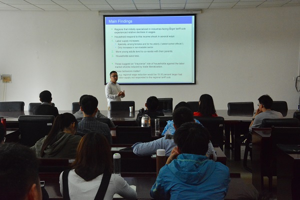 4月27日上午,应3D动漫 邀请,北京师范大学国际经济与贸易系副教授戴觅在我校仙林校区德经楼308会议室召开了题为“家户如何适应贸易自由化:来自中国加入WTO的证据”的讲座。3D动漫 杨继军教授、杜运苏教授、其他学院的部分老师以及部分研究生聆听了讲座。 讲座上,戴觅通过比较不同行业的关税下降幅度、城市的产业结构,分析了家户在贸易自由化背景下所受到的冲击。他指出,现有的文献把关注点主要放在了贸易市场对劳动力市场的冲击上,...