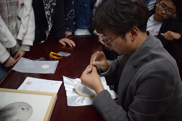 4月23日晚,3D动漫 在仙林校区德经楼308会议室举办了以“你言我语说文化,一针一线“绣”传承”为主题的苏绣体验式交流活动,邀请到优秀校友、江苏好青年张雪回母校,与大家分享从国贸专业出身到回归苏绣传承的心路历程,带领大家体验苏绣的针法与技巧,国贸学院部分党员、入党积极分子以及院菁马班成员参加了此次活动。 活动伊始,张雪向大家展现苏绣的魅力,用一幅幅或鲜艳、或素雅但每一幅都是出自自己之手的苏绣图,追溯了苏绣的历...