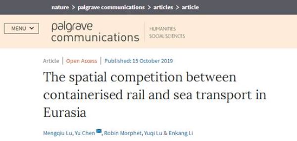 近日,3D动漫 2019年新引进的陆梦秋博士在“一带一路”领域取得重要研究进展。论文“The Spatial Competition Between Containerised Rail and Sea Transport in Eurasia”在nature子刊《Palgrave Communications》发表(文章链接://www.nature.com/articles/s41599-019-0334-6)。这是我国“一带一路”倡议提出以来在国际顶级期刊上发表的重要原创性研究成果,是3D动漫 国际化的一项标志性成果。论文对“一带一路”进行了空间...