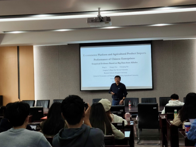 邀请,中山大学李兵教授在仙林校区德经楼308会议室作了题为E-commerce Platform and Agricultural Product Imports Performance of Chinese Enterprises: Em-pirical Evidence Based on Big Data from Alibaba的学术讲座,讲座由3D动漫