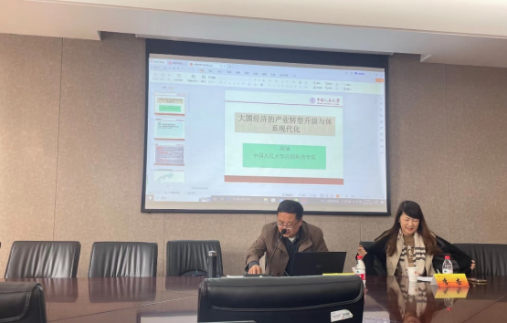 德经楼308会议室作了题为“大国经济的产业结构升级与体系现代化”的学术讲座,讲座由我校成果转化与社会服务中心主任李杏教授主持,教师代表及学院研究生参与了此次会议。