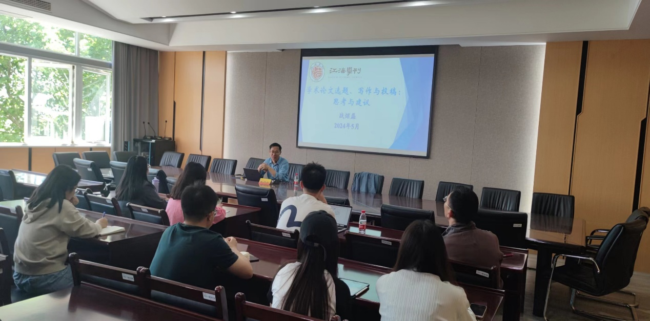 徐圆副院长主持,学院部分青年教师以及研究生聆听了讲座。战炤磊研究员结合《江海学刊》期刊刊文要求和编辑的视角,从论文选题、论文写作以及投稿3个方面提出了一些关于学术论文选题、写作与投稿的思考。