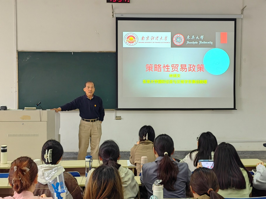 在本次讲学中,林炳文教授从贸易政策的基础理论出发,结合历史经典案例,深入剖析了策略性贸易政策的核心概念与应用场景。林教授着重探讨了在不完全竞争市场条件下,政府如何通过补贴、关税等政策措施影响本国企业的竞争力,并举例分析了航空、半导体、空中巴士等高科技行业的成功案例。多位同学表示,通过这次讲座,他们对复杂的国际贸易政策有了更加深入的理解,也对大陆两岸的知识交流有进一步的感悟,同时也意识到了未来作为国贸专业人才的使命与责任。