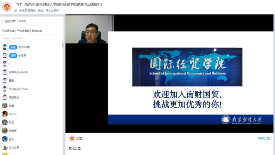 5月15日,6月24日,在中国教育在线直播平台,教育部青年长江学者余泳泽教授开展了招生直播咨询会,学院党委副书记季霞开展天津市综合场高校招生政策解读网络咨询会,在线人数超过5000余人。