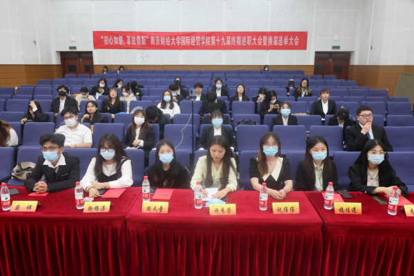 各部门的负责人结合自身部门特点、工作内容和负责范围,对学期工作进行总结,整理相关工作经验和工作反思并阐述下学期的工作计划,也对一整年自身以及部门的成长进行了回顾。各部门述职完毕后,由许秀芳老师、分团委副书记和主席团成员颁发第十九届分团委和学生会主席团、部长团聘书。