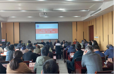 在德经楼308会议室召开教职工大会学习党的十九届六中全会精神。会议由学院党委书记张阳军主持,学院全体教职工参加会议。