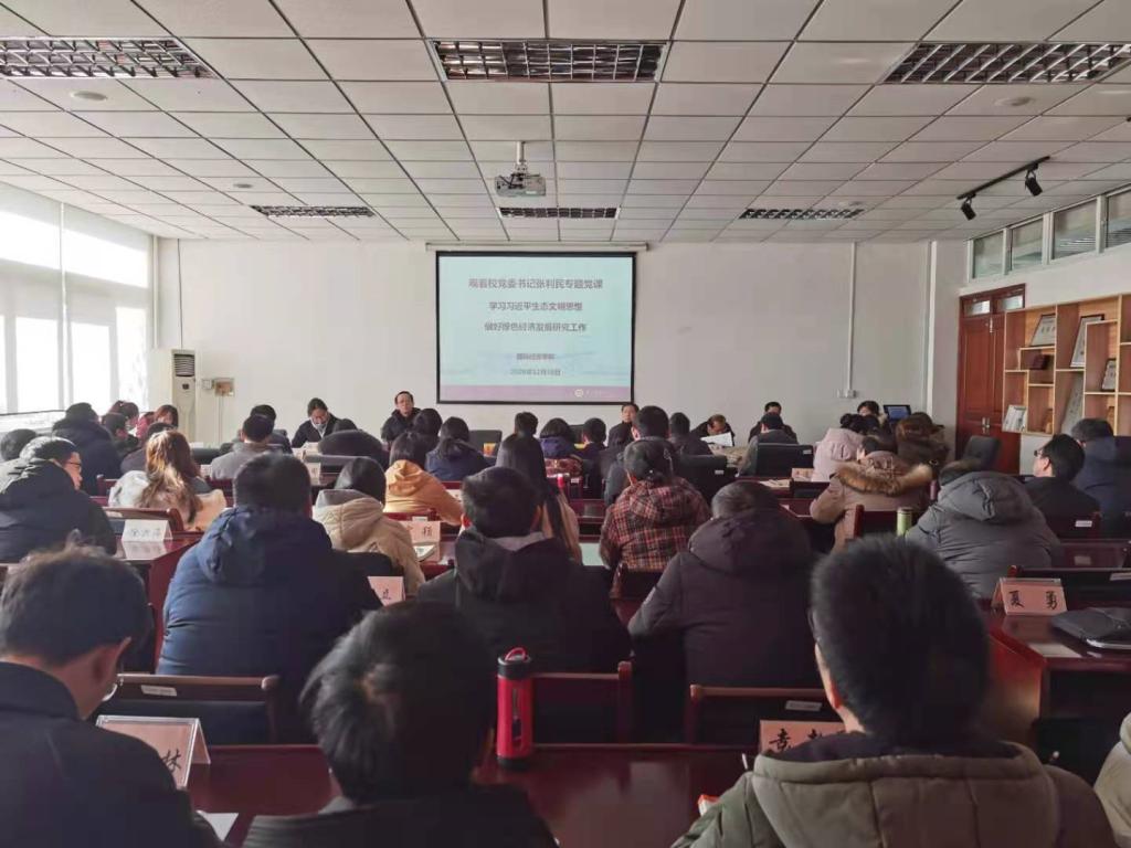 12月16日,3D动漫 组织全体教职工在德经楼308会议室集中观看校党委书记张利民专题党课《学习习近平生态文明思想 做好绿色经济发展研究工作》。