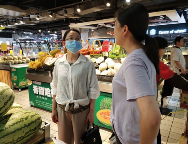 为了更充分地了解城市生鲜行业的经营情况,调研小队还对安徽省的生鲜超市进行了实地调研。小队成员奚亚兰通过对安徽安德利超市购物者的采访得知,疫情期间多数城市家庭的食品储备充足,但是出于对家人健康、生活品质等的考虑,很多家庭仍然会每日购买新鲜时蔬。调研过程中,小队成员采访了到超市购物的王阿姨,王阿姨表示:“比起价格的上涨,我更关注疫情期间家里人能否吃上新鲜的水果蔬菜,家人的健康才是最重要的。”