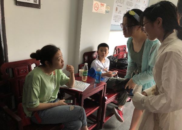 (图为团队成员对前来医馆就诊患者进行采访 燕芙蓉 摄)