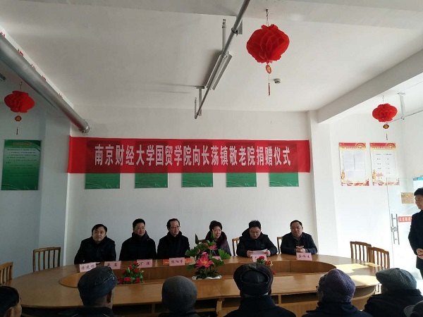教工党员在党委研究生工作部部长韩力争、学院党委书记张阳军、教工党支部书记丁强的带领下,赴射阳县长荡镇敬老院,举行“记党性、察民生、寒冬送温暖”捐赠仪式,为当地敬老院捐赠价值3万元的空调等设备。