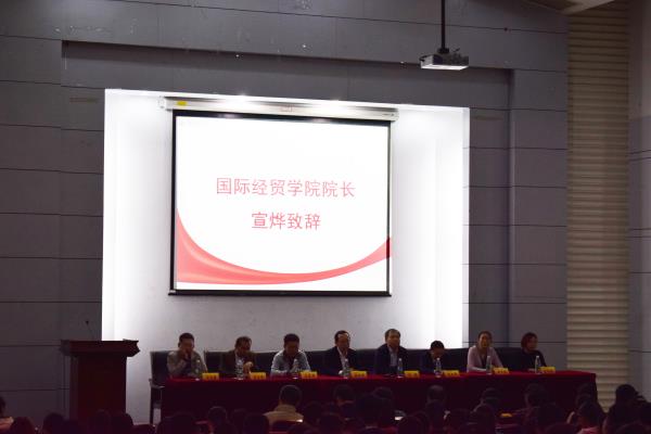 院长宣烨、党委书记张阳军,副院长闫星宇、尚卫平、张文武,国贸系系主任杜运苏,贸经系系主任李平华,电子商务系系主任徐利敏出席了此次会议,全体2017级新生参加了此次会议。