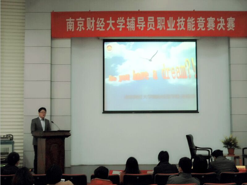 辅导员孙绪华老师以《Do you have a dream?》为主题进行了自我介绍。孙老师从基础和特色两个方面来介绍自己的辅导员工作,他着重强调的特色工作方法,获得了评委的赞赏。孙绪华老师与时俱进,独到的创新思维可见一斑。接着孙老师以《热爱学习》为题发表演讲,强调学习的重要性。在“谈心谈话情景再现”中,孙老师和深陷困境的同学促膝长谈,帮助同学解决问题,展现他身为人师崇高的职业操守和优秀的职业技能。