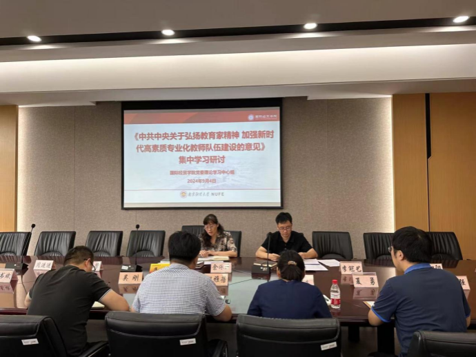 仙林校区德经楼308会议室召开学习会,围绕《中共中央国务院关于弘扬教育家精神加强新时代高素质专业化教师队伍建设的意见》开展集中学习研讨,学院全体院领导参加了学习会并做了重点发言,会议由院党委书记周亚芳主持。