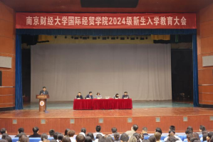 接着院长余泳泽在讲话中诠释了三个问题:为什么选南财?为什么选国贸院?为什么选这三个专业?学校好,学院强,专业精。期待同学们要心中有爱,既有对祖国的大爱,也有对学校,老师和父母的小爱;要脑中有识,不仅有专业学科知识,还有为人处事的知识;要眼里有光,坚定初衷和梦想;手中有活,要有专业实践的能力,进行创新创业活动;要腿上有劲,注重身体健康,锻炼身体,培养强健的体魄。