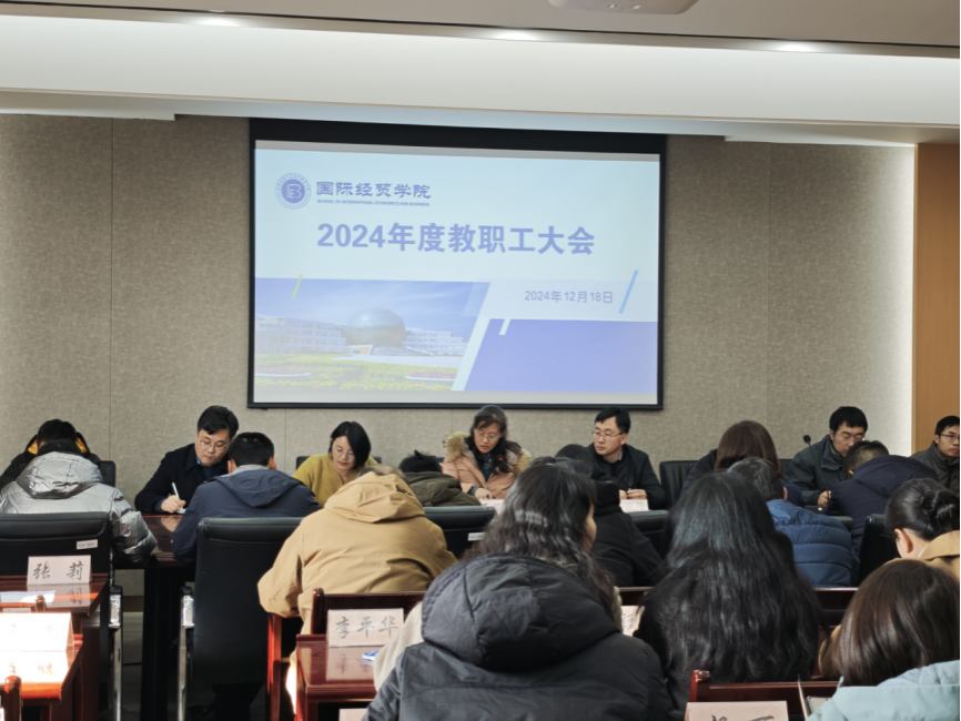 于德经楼308会议室召开了2024年度教职工大会。学院领导及全体教职工出席会议,会议由院党委书记周亚芳主持。
