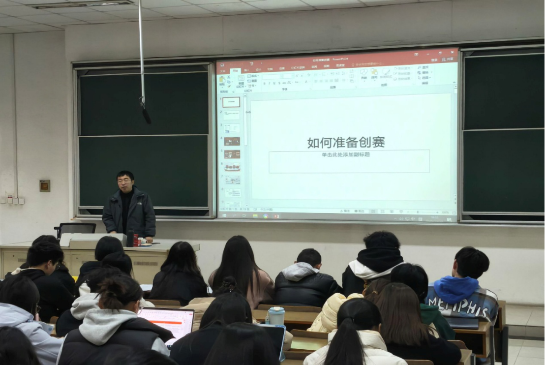 学院副院长李冠艺老师致辞。他首先传达了今年学校组织开展“挑战杯”赛事的有关要求。他强调,本次院赛是学院推动实践育人、科技育人的重要平台,鼓励青年以项目化思维参与各类科创竞赛,并分享团队组建、实践调研、项目打磨,展示呈现等方面的技巧,为选手们改进参赛作品拓宽了思路。