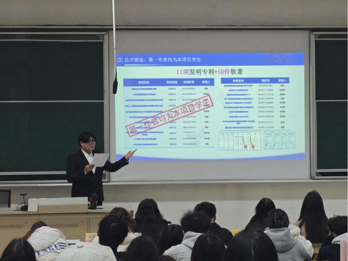 在随后的答辩环节中,各参赛团队依次登台,围绕项目背景、创新亮点、商业模式、市场前景等核心内容深入阐述项目的研发背景、技术路径及社会价值。“智绘光影” 团队深耕自动绘画技术研发,把AI机械臂和灯具艺术巧妙结合,开发独特、新颖的灯具定制解决方案;“茶测世界” 团队立足茶文化传播与产业升级,运用大数据分析、Unity前端、Teabot引擎技术,构建茶企数据赋能;“低空智融” 团队紧跟低空经济发展趋势,打造低空碳资产动态质押系统,探索低空配送与多端交互的创新模式。