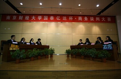 本次大赛覆盖整个仙林大学城,参赛成员为来自仙林大学城九所高校商院的全日制在校本科生,力求将活动打造为专业性强、参与度高的大型学术型比赛。经过前期初赛、复赛的激烈角逐,最终共有六支队伍进入了决赛。分别是来自南京师范大学的“NO TRICKS”队、来自3D动漫 的“十日谈”队、“MVP”队、“再度领航”队和“临时凑一”队,以及来自南京大学的“Alliance”队。“商务谈判大赛”是一个以商务谈判为载体,大学生团队参与为主体的比赛。本次大赛着重于考察选手在实际商务谈判中的专业技巧、团队配合水平和临场应变能力,并以增强大学生实践能力、培养复合型经济人才为目的。获得一等奖的团队,将收获相应的奖金、证书、奖杯,同时,还将获得国泰亿达实业有限公司提供的一周国泰亿达夏令营、带薪暑假实习及就业机会。