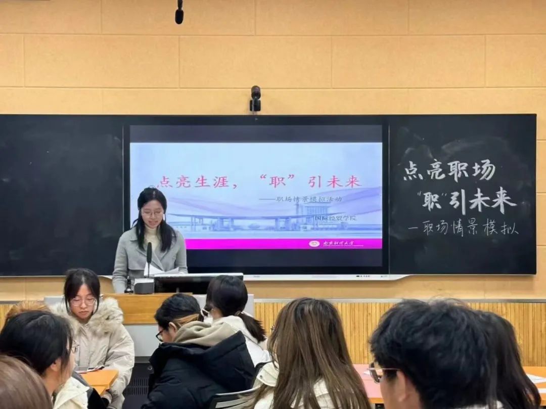 在博文楼举办了“点亮职场,‘职’引未来” 职场情景模拟活动,此次活动邀请到国实2101陈又苹、国实2201王若辰和金工2201韩震进行经验分享。