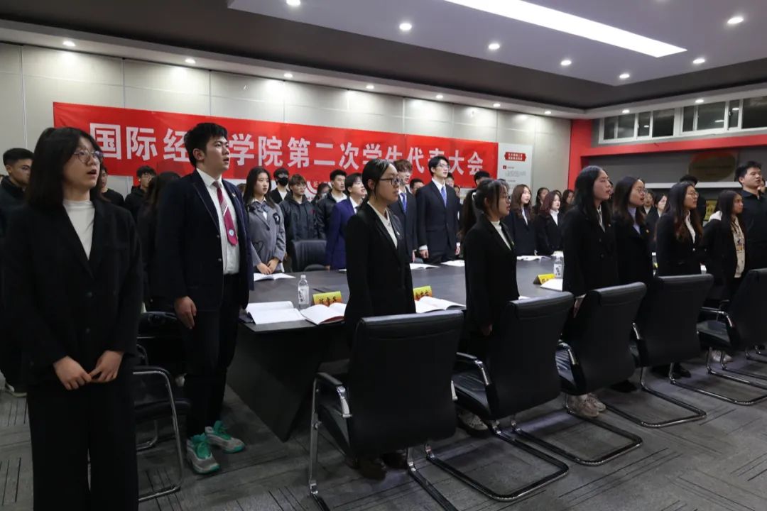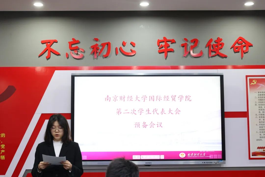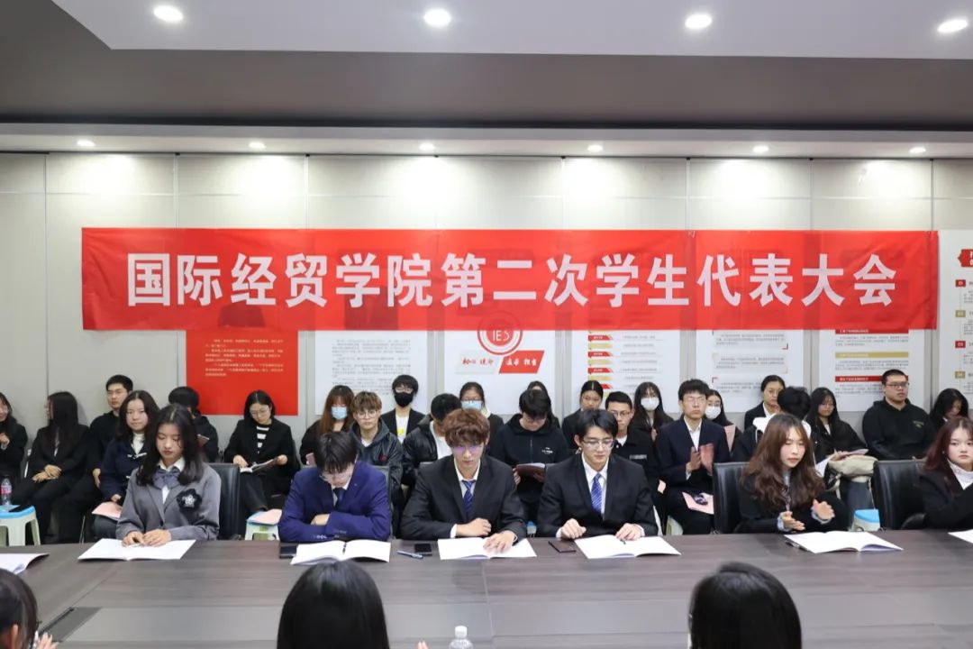 分团委书记邓盛佳老师、兄弟学院主席代表出席,国际经济与贸易、贸易经济、电子商务三个专业各年级共52名代表参加了此次会议,会议由学生会主席丁莹主持。