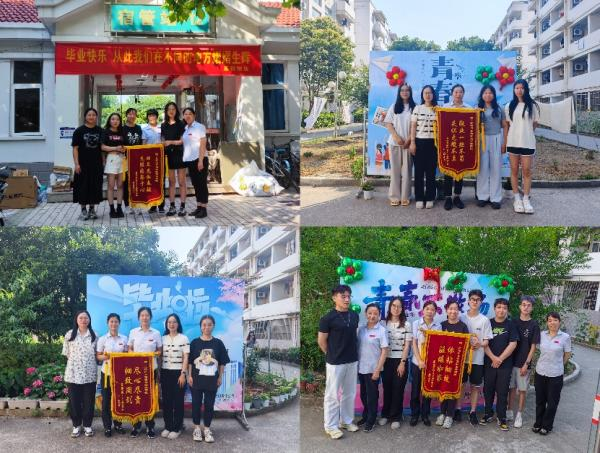 24届毕业生为宿管站阿姨送来锦旗。浓浓爱意如春风,无微不至似母情,感谢她们四年来无微不至的照顾。