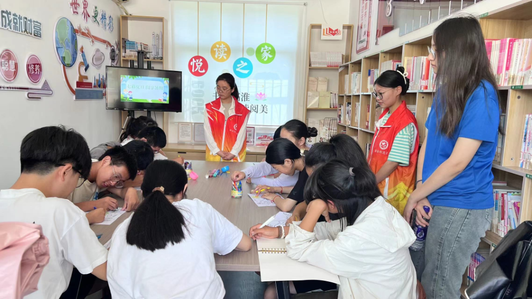 团队在调研实践过程中贯穿公共服务志愿,践行志愿精神。团队成员共同前往了泗洪县临淮镇妇女儿童之家,积极为留守儿童们树立正确价值观,参与“七彩夏日,阅享暑期”活动,耐心陪伴孩子们进行美术创作与课外阅读,在孩子们心中播撒希望的种子。并在活动交流过程中提及“数商兴农”,让孩子理解乡村振兴的意义。同时团队尝试本次直播带货收益用于临淮镇留守儿童义务支教,希望他们在未来有所作为,为乡村振兴事业添砖加瓦。