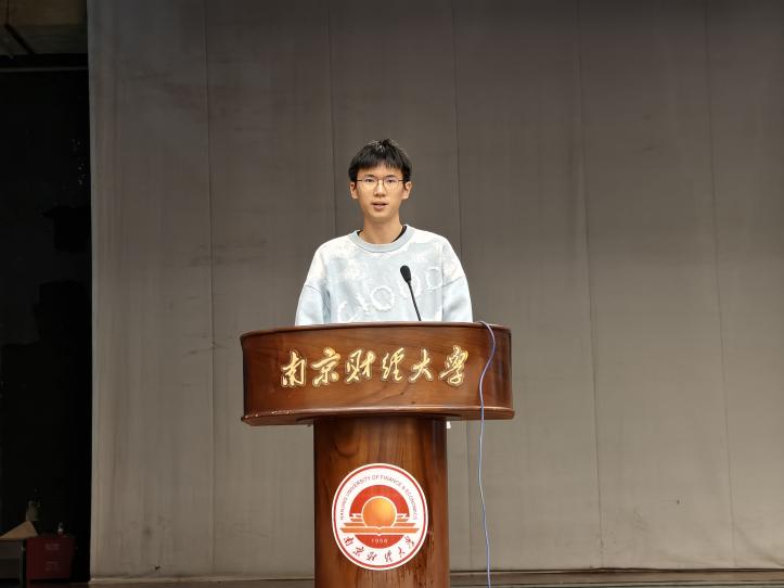 优秀老生代表朱奕昊同学发言,他借孔子所言“温良恭俭”这四大美德,向学弟学妹们提出了要将学习融入生活点点滴滴,内化于心;要扎根基层练本领,真抓实干广实践;还要能够敢闯敢为敢创新,锚定自身勤奋斗。