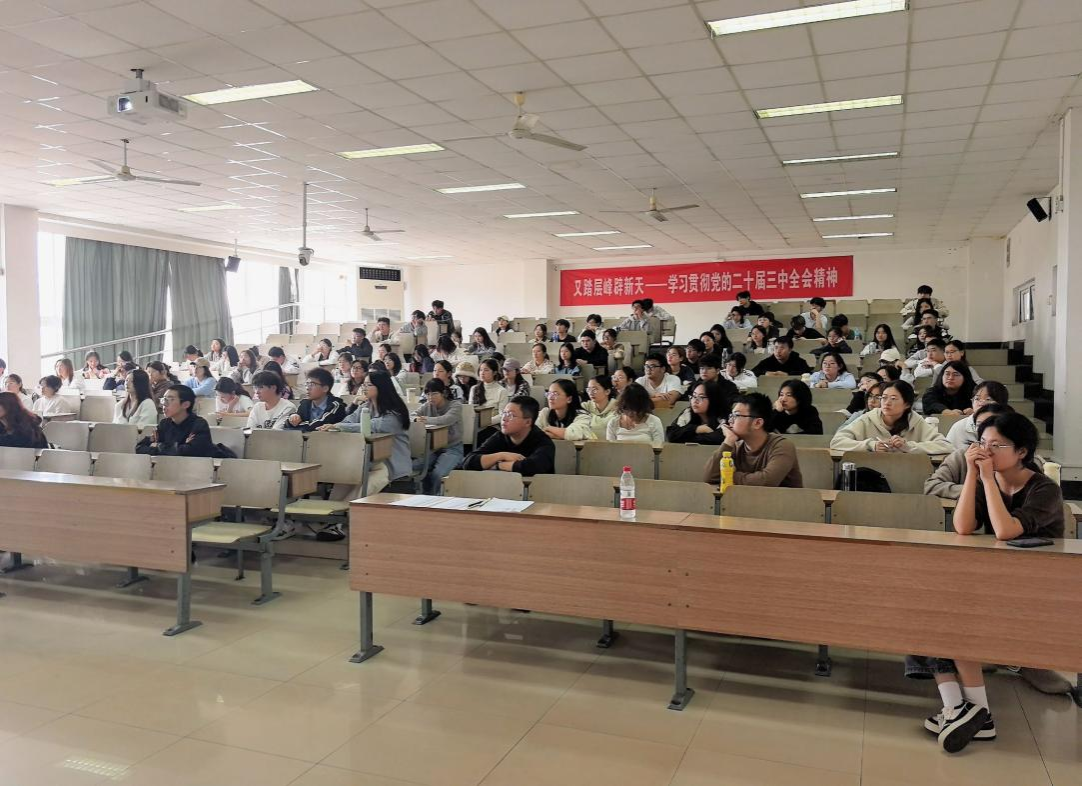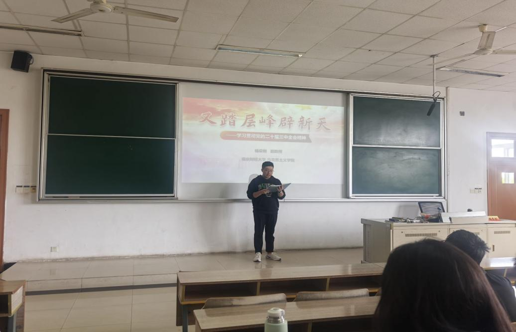 青马班第一课于博观楼221正式开课。学院邀请马克思主义学院杨荣刚副教授授课,向同学们讲解党的二十届三中全会精神相关内容。