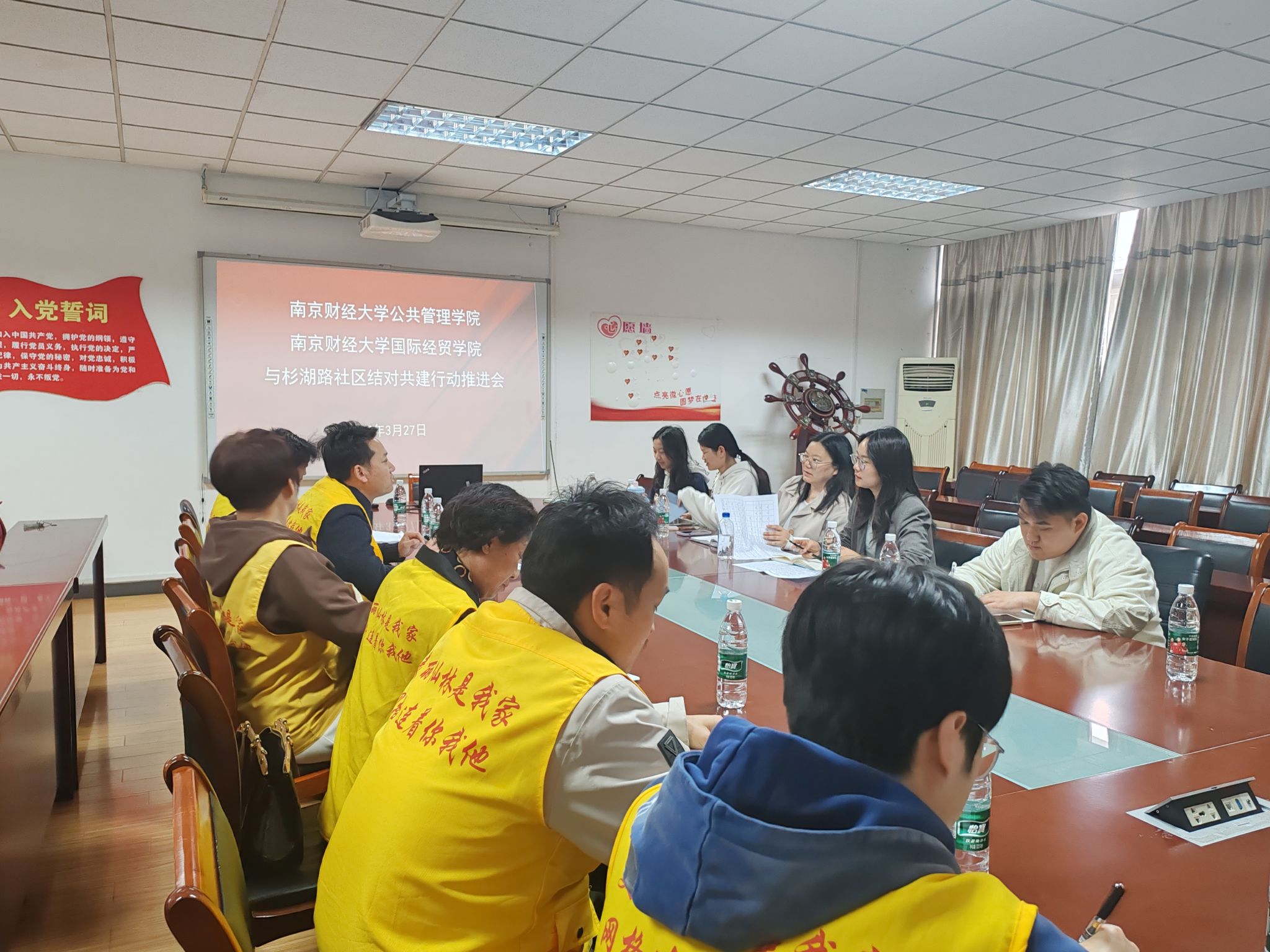 团委书记邓盛佳、公共管理学院团委书记于华、杉湖路社区书记曹啸出席,十余名社区网格员、志愿者,学院志愿服务项目负责学生参会。院社双方围绕社区资源整合、志愿服务创新及传统节日活动等议题展开深入交流,共同探索校社合作新模式,助力基层治理与社区服务提质增效。