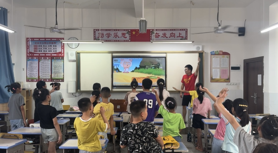 在音乐课堂上,志愿者与孩子们共同唱响《左手右手》。“当你的手拉着我的手,团结的力量彼此感受……”充满力量的歌声与整齐的拍手声在校园回荡,传递着团结协作的精神和对未来的美好期许。