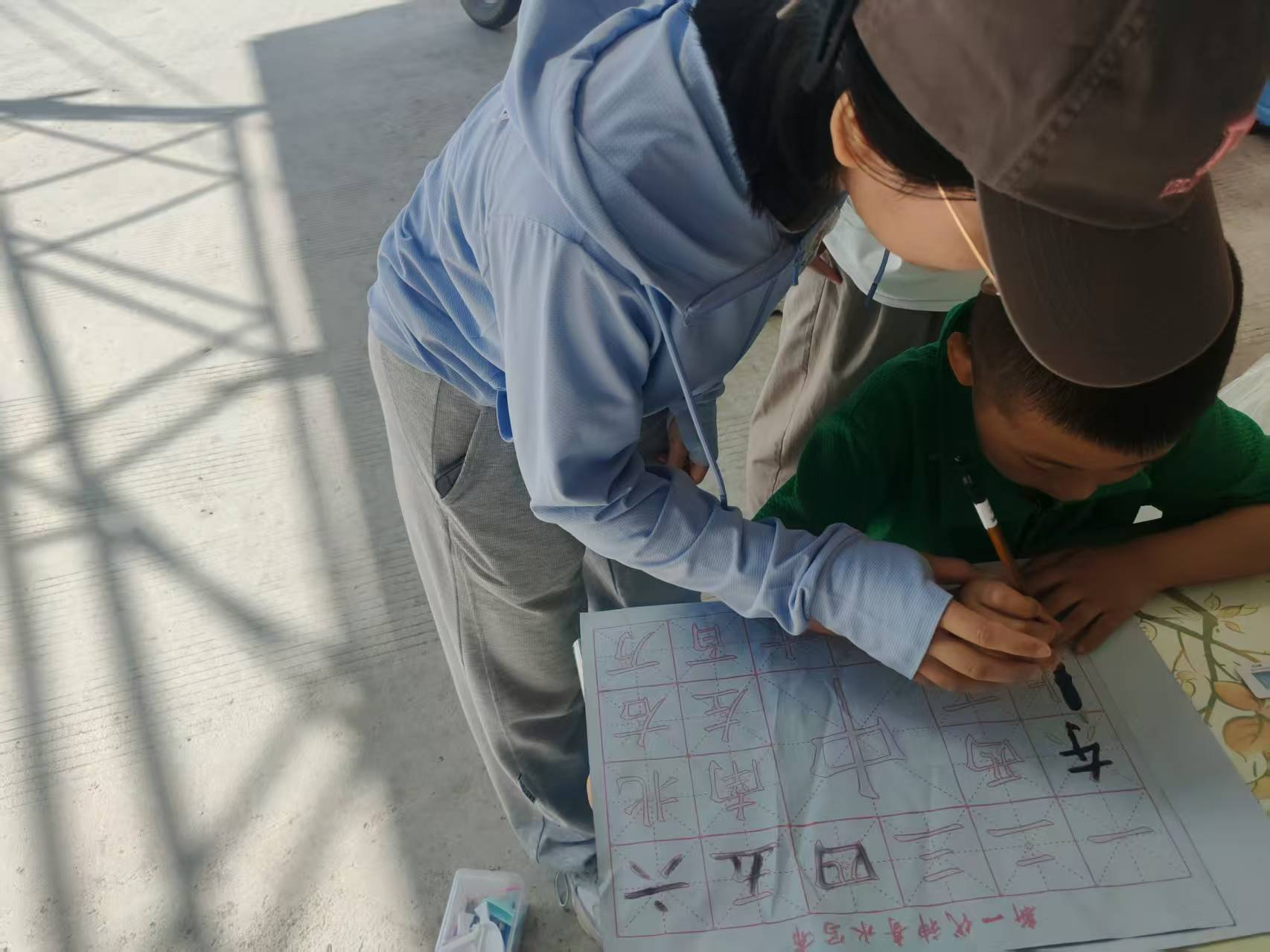 图为志愿者教孩子手写毛笔字 颜红丽 供图