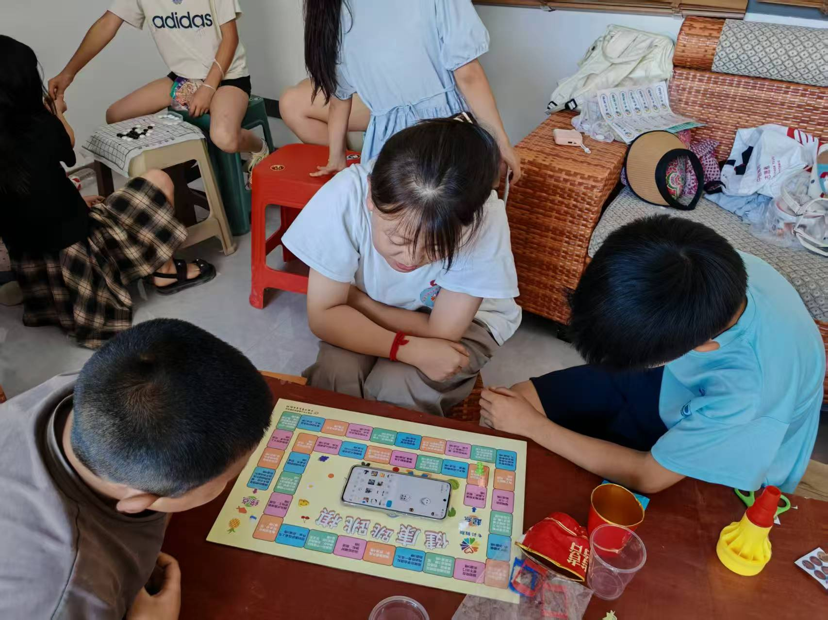 图为志愿者与孩子们进行健康跳棋比赛 曾钰桃 供图