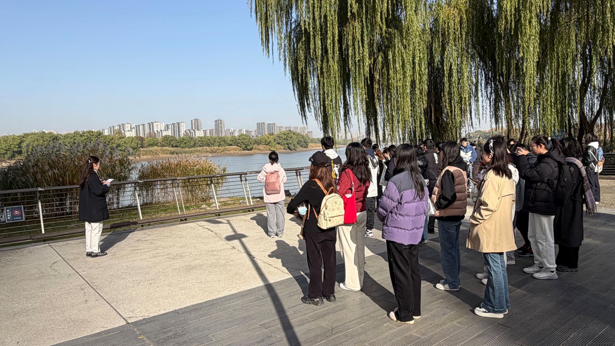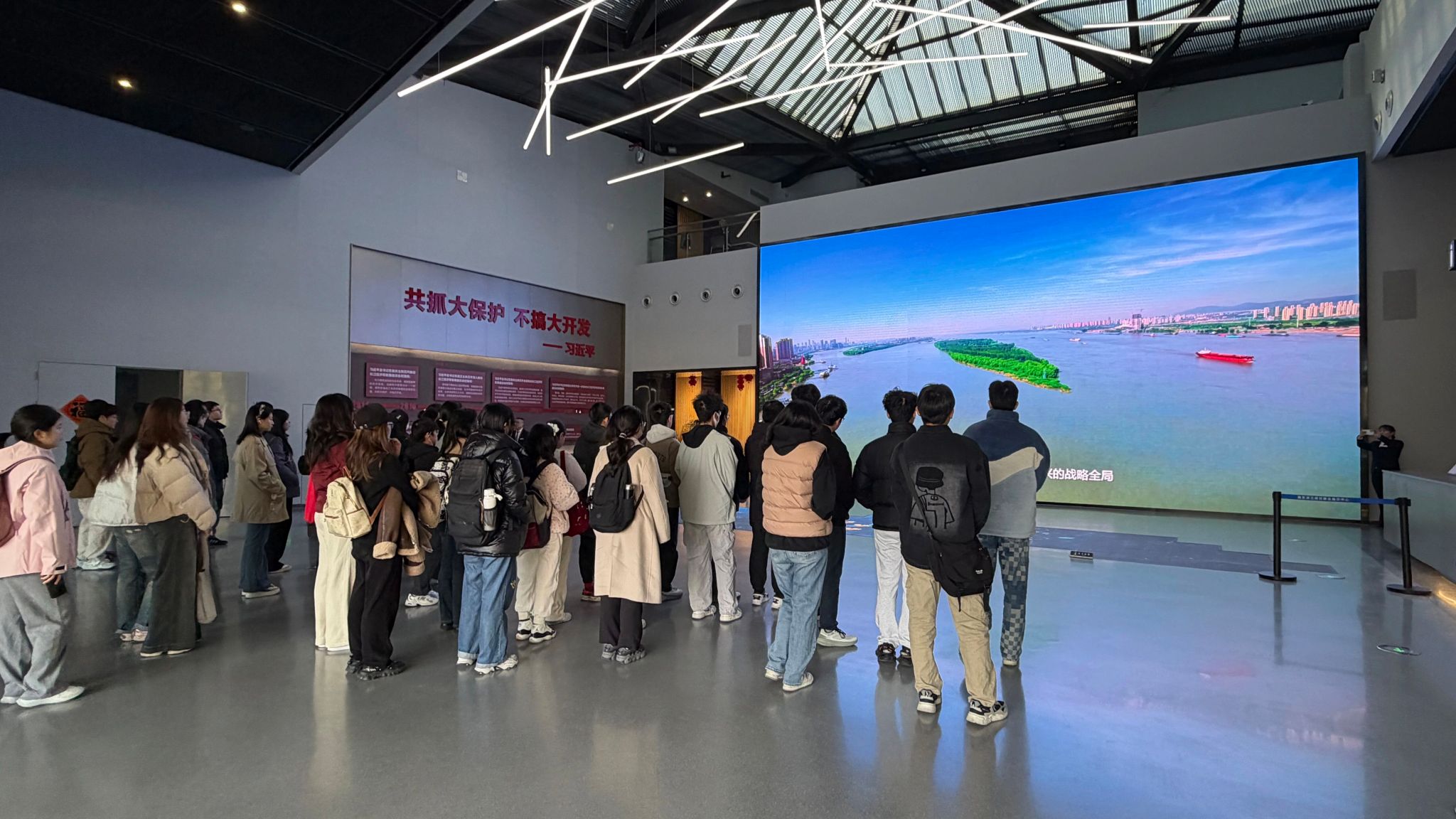 师生前往南京滨江规划建设展示中心,开展以“活力滨江·生态建邺”为主题的实地学习活动。同学们在讲解员的引导下,沿规划线路深入参观,亲身感受滨江区域在生态修复、空间规划与城市融合等方面的创新实践,完成了一堂生动的“行走的思政课”。