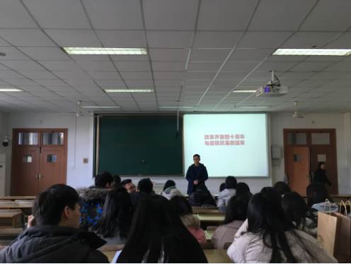 国贸(实验班)1601班全体同学于12月12日在博远楼208教室召开了主题班会,同学们从不同角度出发,共话改革开放下国际贸易的新篇章。作为国际经济与贸易专业大三的学生,同学们对国际贸易相关理论有了一定的了解,对于未来的专业学习与就业方向也有了更充分的考虑。作为在改革开放春风沐浴下成长起来的青年人,同学们就四十年来改革开放对国际贸易的影响做了热烈的交流讨论。