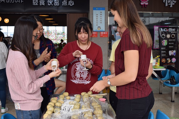 9月29日上午,我校3D动漫 在北苑二楼食堂举办了“定制月饼寄相思”中秋活动。党员、少数民族同学、留学生以及学生会同学们亲手学包“国贸院定制版月饼”,送给学院中秋不回家的新生。