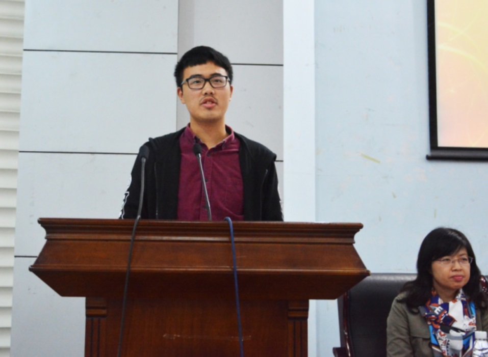 随后,国贸1503刘雅馨发言,她分享了自己的大学经历,希望2016级新生们要多给自己一些机会,多参加一些活动,提高与人的交流能力;在学习中要培养自觉与自制力,并给出了在英语与数学方面的学习建议,令新生们受益良多。贸经1602张子文作为新生代表发言,他认为2016级新生不仅要对个人未来的负责,更要肩负起对报答学校与社会的光荣使命。