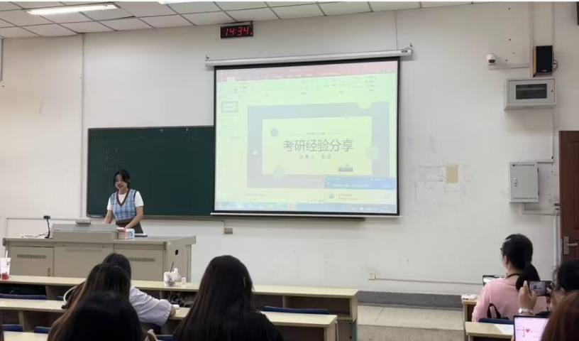商务1901王洁进行了考研经验分享,她总结了自己备战考研过程中学习方法和学习技巧。王洁学姐将自己备考过程细致地分为基础、强化、冲刺三个阶段,并向大家推荐了自己在每个阶段所做的考题和学习的网课。最后,王洁学姐向大家提出了以下三点建议:在学习过程中要注重效率、当天的事情当天完成和不要盲目比进度。