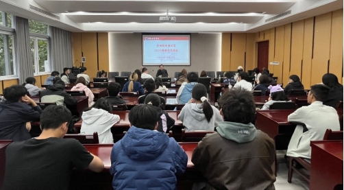 在德经楼308会议室召开苏州、天津片区新生座谈会。学院党委副书记周进进出席会议并发表讲话,与片区新生齐聚一堂,共话成长、共绘蓝图。