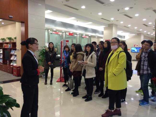 该行理财经理——我校10级校友陈方丽接待了参观学生,她向大家系统的介绍了中信银行的组成及各个部门。除了银行营业厅以外,她还带领各位同学参观了银行的公司部、财务部、休闲娱乐室、行长办公室以及未来之星俱乐部等等,参观之余,详尽的解释了银行内部各个岗位不同的职能分工而所需要的必备技能。随后,陈方丽详细的介绍了中信银行目前与百度的合作模式,指导各位学生下载中信银行的APP体验互联网+金融的最新成果,通过线上一键处理金融业务。