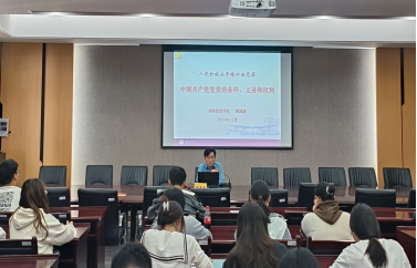 于11月2日在德经楼308会议室开展了一堂主题为“中国共产党党员的条件、义务和权利”的专题党课。本次党课邀请到院党委副书记、政治辅导员周进进作为主讲人,引领在场的青年学生坚定理想信念,增强党性修养,提高政治觉悟,增强担当意识,为实现中华民族伟大复兴贡献自己的力量。