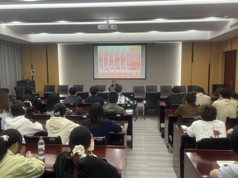 于德经楼308会议室开展“以昂扬之姿书奋进华章”专题党课。本次党课由学院党委书记、研究生第一党支部政治辅导员周亚芳担任主讲人。