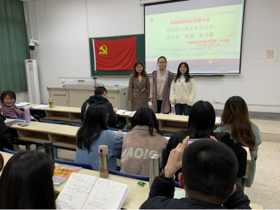 2021年12月11日,3D动漫 3D动漫 本科生第一党支部在在德经楼108教室召开预备党员转正支部大会,讨论本支部汪子欣、赵利、吴川丽3名预备党员按期转正事宜,支部大会由本科生第一党支部书记孙绪华主持,支部大会应到党员48人,实到党员48人,其中有表决权的正式党员8人,实到正式党员8人。