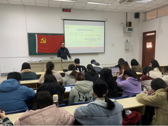 本科生第一党支部在德经楼108教室召开党员支部大会,讨论接收李荟等6名发展对象为预备党员事宜,支部大会由本科生第一党支部书记孙绪华主持,政治辅导员张阳军书记全程参与大会并指导工作。支部大会应到党员42人,实到党员42人,其中有表决权的正式党员8人,实到正式党员8人。
