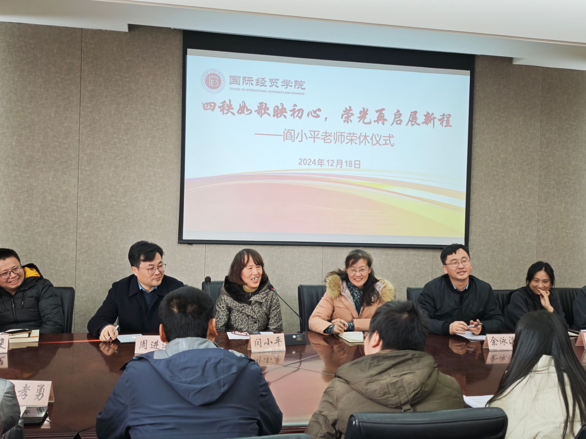 祝福无限,余热生辉。余泳泽院长深情寄语,感谢阎老师将自己的美好岁月和满腔热情都奉献给了国贸院,希望她能继续关心支持学院的建设发展和年轻教师的成长,并祝愿阎老师健康快乐,在人生的新赛道上开启美丽新篇章。