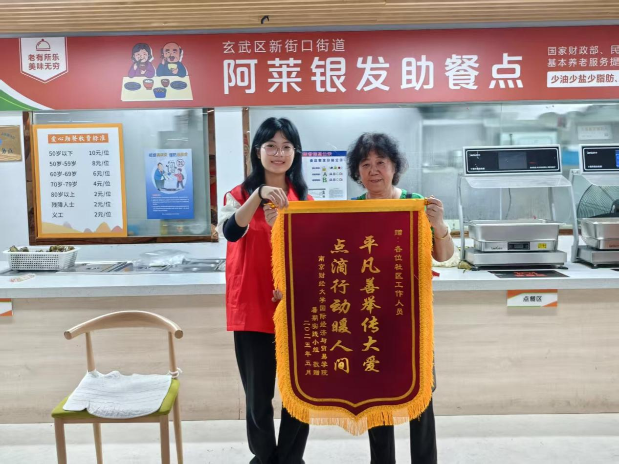 活动的最后,“一饭一心志愿队”把事先准备好的锦旗赠送给在服务中心辛勤付出的服务志愿者们。在将锦旗递给老一辈志愿者的同时,年轻的志愿者接过了新时代的爱心接力棒,爱心温情的传播尽在一来一往一饭一心之间。