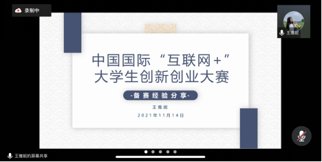 2022年“互联网+”大赛备赛线上讲座圆满举行。本次讲座的特邀嘉宾为东南大学团委创业实践部部长王雅妮,来自各个专业、各个年级的学生积极参加,会议由贸易经济系副主任李冠艺主持。