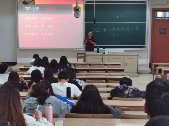 为进一步提升人才培养质量,帮助本科生确立明确的学习目标,2021年5月19日,电子商务考研升学分享会在博远楼110教室举行。商务18级 、商务19级、商务20级约100余人积极报名参加,电子商务系系主任徐利敏主持会议。
