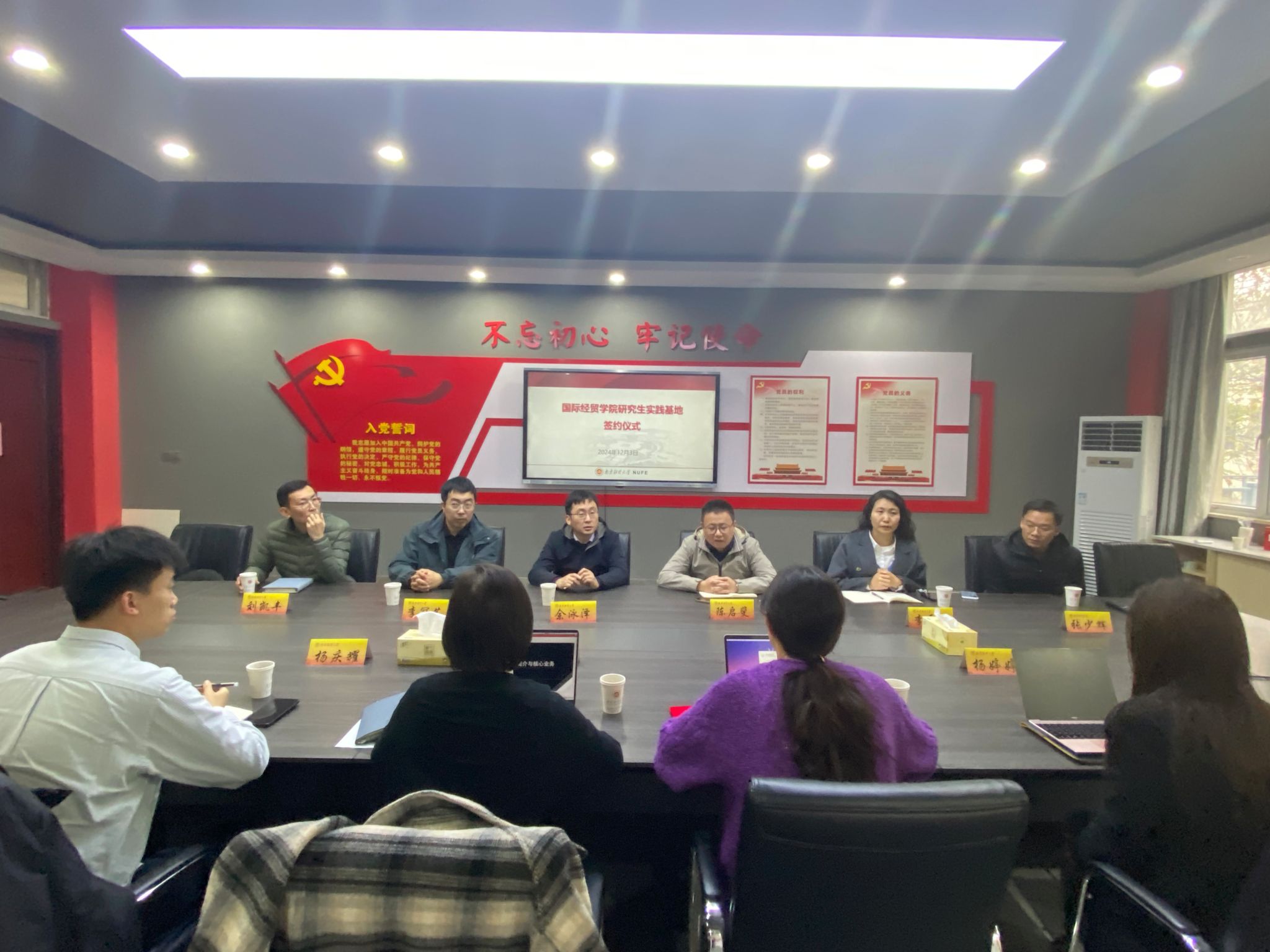 与江苏未迟数字技术有限公司在德经楼206会议室举行了研究生实践基地签约仪式。余泳泽院长、陈启斐副院长、李冠艺副院长、学科骨干教师李平华、刘凯丰和张少辉出席了此次签约仪式。余泳泽院长对江苏未迟数字技术有限公司的四位领导莅临3D动漫